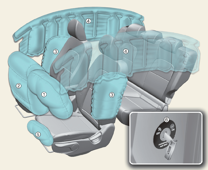 * Фактические подушки безопасности, установленные в автомобиле, могут отличаться от показанных на иллюстрации.