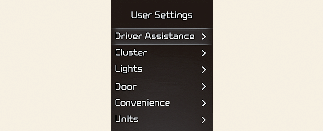 В этом режиме можно изменить настройки комбинации приборов, дверей, ламп и так далее.