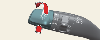 Если нажать переключатель света фар в направлении комбинации приборов, будет включен дальний свет, а функция автопереключения дальнего света отключится.