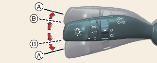 Указатели поворота работают только при включенном зажигании. Для включения указателей поворота переместите рычаг вверх или вниз (А).