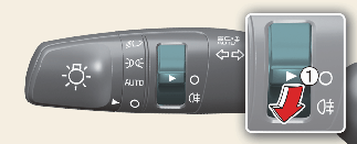 Для включения задних противотуманных фар переведите переключатель задних противотуманных фар (1) в положение «Вкл.», когда передние фары включены.