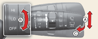 B: Регулировка времени прерывистой работы стеклоочистителя
