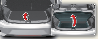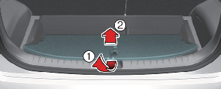 Сложите (1) заднюю часть полки багажника вперед(2).
