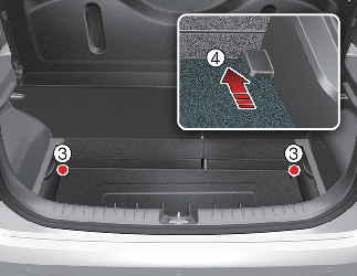 Потяните полку багажника таким образом(3), чтобы шарниры достигли концов пазов ― полка откинется вниз, освободив дополнительное место для багажа.