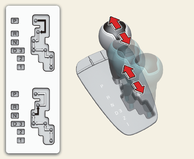 Рычаг переключения передач можно перемещать без дополнительных действий.