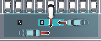 - Работа системы предотвращения столкновений с объектами, движущимися в поперечном направлении позади автомобиля