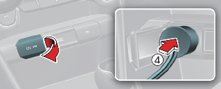С помощью кабеля и разъемов (4) выполните подключение между компрессором и розеткой питания автомобиля.