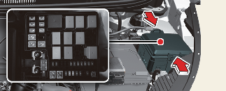 После проверки панели предохранителей в моторном отделении установите на место крышку панели и прижмите ее до щелчка.