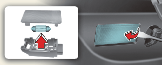 С помощью отвертки для винтов с прямым шлицем аккуратно подденьте рассеиватель и выньте его из корпуса лампы в салоне.