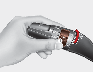 Fog lights are used to provide improved visibility when visibility is poor due to fog, rain or snow, etc. The fog lights will turn on when the fog light switch (1) is turned on after the parklight is turned on.