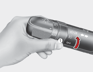 To turn off the front fog lights, turn the fog light switch (1) to the O(OFF) position.