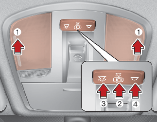 (1): Press the lamps to turn the front map lamps on and off.