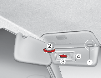 To use the vanity mirror, pull down the visor and slide the mirror cover (3).