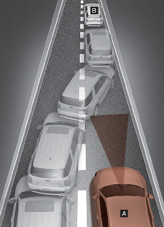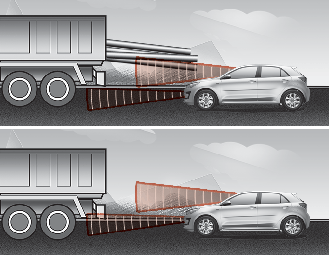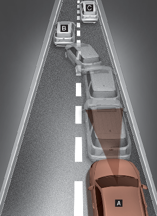 When the vehicle in front has heavy loading extended rearward, or when the vehicle in front has higher ground clearance, it may induce a hazardous situation. Always pay attention to road and driving conditions, while driving and, if necessary, depress the brake pedal to reduce your driving speed in order to maintain distance.