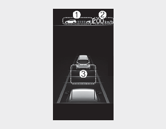 (1) Whether there is a vehicle ahead and the selected distance level are displayed. (2) Set speed is displayed.(3) Whether there is a vehicle ahead and the target headway are displayed.