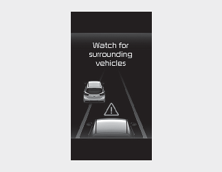 In the following situation, the 'Watch for surrounding vehicles' warning message will appear on the cluster, and an audible warning will sound to alert the driver of road conditions ahead.