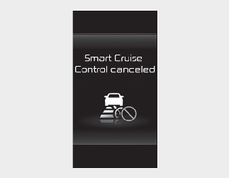 If the function is temporarily canceled, the 'Smart Cruise Control canceled' (or 'SCC (Smart Cruise Control) canceled') warning message will appear on the cluster, and an audible warning will sound to alert the driver.