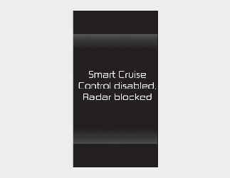If this occurs the 'Smart Cruise Control disabled. Radar blocked obscured' (or 'SCC (Smart Cruise Control) disabled. Radar blocked' warning message, and warning lights will illuminate on the cluster.