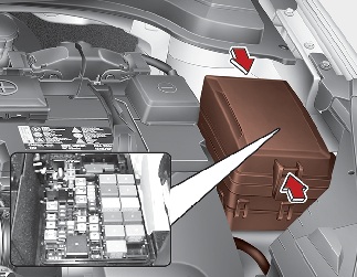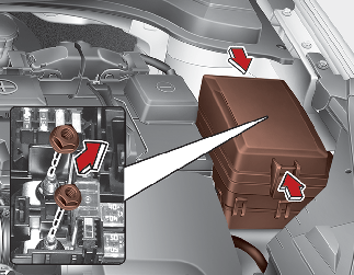 CautionAfter checking the fuse panel in the engine compartment, securely install the fuse panel cover through the audible clicking sound.
