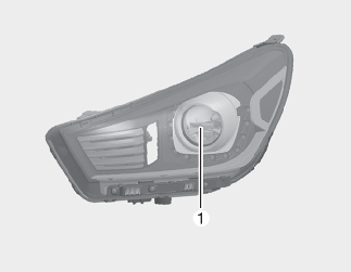 If the head lamp (LED) (1) is not operate, have your vehicle checked by a professional workshop.Kia recommends to visit an authorized Kia dealer/service partner.The LED lamps cannot be replaced as a single unit because it is an integrated unit. The LED lamps has to be replaced with the unit.A skilled technician should check or repair the head lamp (LED), for it may damage related parts of the vehicle.