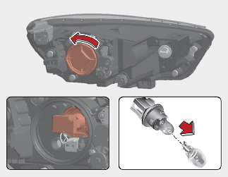 Remove the headlamp bulb cover by turning it counterclockwise.