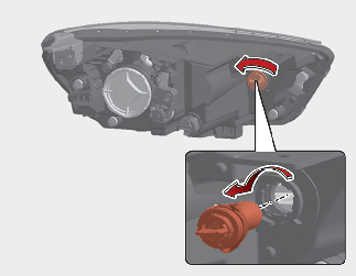 Remove the bulb-socket from the headlamp assembly by turning the bulb-socket counterclockwise until the tabs on the bulb-socket align with the slots on the headlamp assembly.