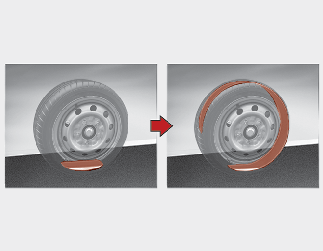 타이어 공기압은 규정 공기압이 되어야 합니다. 그렇지 않을 경우 운행을 멈추고 자사 서비스를 이용하거나 견인하십시오.