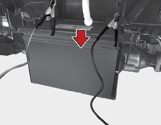 배터리의 「+」 단자와 「-」 단자를 반대로 연결시 배터리와 타이어 임시 수리 장치에 손상을 줄 수 있으므로 반드시 연결순서에 따라 케이블을 연결하십시오.