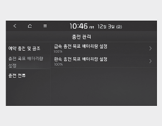 화면에서 충전 관리 → 예약 충전 및 공조를 선택하십시오.