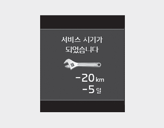 배터리 케이블 분리, 또는 배터리 방전 시, 서비스 알림 설정 값(주행거리, 경과 시간)이 임의로 변경될 수 있습니다. 이 경우, 서비스 알림 설정 값을 재입력하십시오.