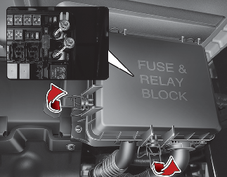 모터룸 퓨즈/릴레이 박스 커버를 닫을 시 락킹음 확인을 통해 커버 닫힘을 확인하십시오. 모터룸 퓨즈 박스 커버가 정상체결 되지 않으면 수분 유입으로 인한 전자장치의 비정상 작동이 발생할 수 있습니다.