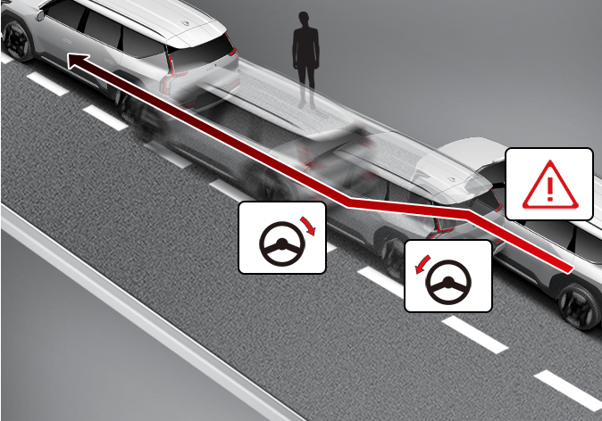 Ако бъде разпознат възможен сблъсък с превозно средство отпред, пешеходци, велосипедисти и двуколесни моторни превозни средства и водачът управлява, за да избегне сблъсъка, подпомагането на волана за избягване на сблъсък ще помогне на водача в управлението на волана.