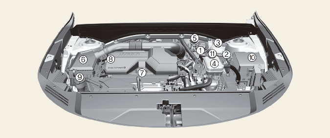 * Действителният двигателен отсек в автомобила може да се различава от това на илюстрацията.