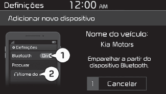 • A imagem do ecrã neste manual é um exemplo. Verifique o ecrã do seu sistema para o nome do veículo e nome do dispositivo Bluetooth exatos.