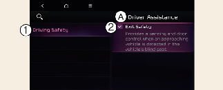 If Exit Safety is deselected, Safe Exit Warning cannot warn you. The driver should always be aware of unexpected and sudden situations from occurring.