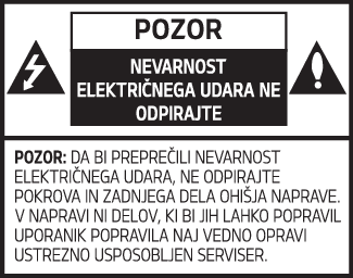 Da bi preprečili nevarnost električnega udara, ne odstranjujte pokrova ali zadnjega dela ohišja te naprave. V ohišju ni delov, ki bi se jih dalo popravljati. Popravila naj vedno opravi ustrezno usposobljen serviser.