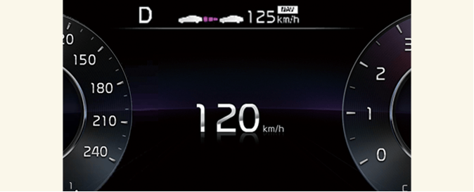 Kadar Pametni tempomat na podlagi navigacije deluje, se bo kazal na instrumentni plošči kot sledi: