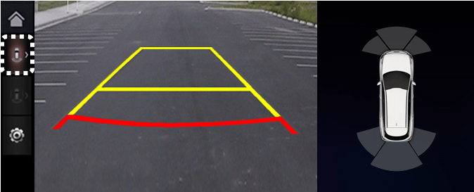 Pritisnite gumb za parkiranje/pogled (1), medtem ko je menjalnik v položaju D (vožnja) ali N (nevtralno); na zaslonu se bo prikazal pogled nazaj med vožnjo.