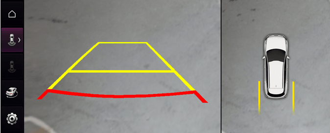Če izberete opozorilo o parkirni razdalji, bo opozorilo o parkirni razdalji prikazano na desni strani zaslona za pogled od zgoraj sistema za nadzor okolice.