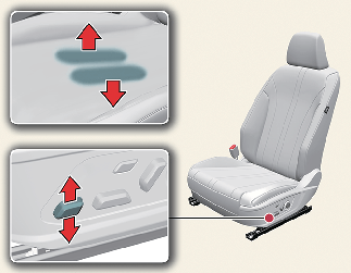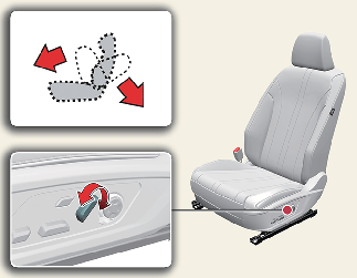 Переведите переднюю часть регулирующего переключателя вверх, чтобы поднять переднюю часть подушки сиденья, или вниз, чтобы опустить ее.