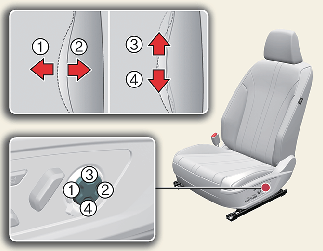 Не управляйте двумя или более переключателями сиденья с электроприводом одновременно. Это может привести к отказу электродвигателя привода или другого электрооборудования.