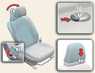 Нажмите кнопку фиксатора подголовника (3), и одновременно потяните подголовник вверх (4).