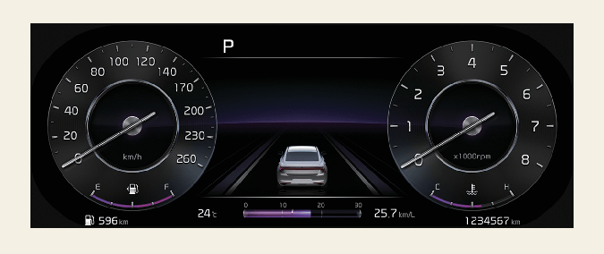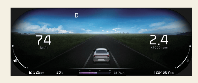 Тему можно изменить, выбрав следующие пункты меню: «Vehicle» (Автомобиль) → «Instrument Cluster Setting» (Настройка приборной панели) → «Theme Selection» (Выбор темы).