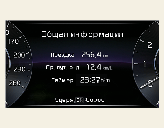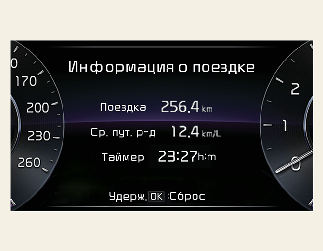 Если после отображения информации о поездке нажать кнопку «OK», удерживая ее более 1 секунды, информация будет обнулена.