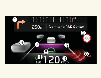 информация о расстоянии до находящегося впереди автомобиля в системе SCC (при наличии)