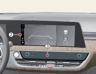 Если нажать одну из кнопок информационно-развлекательной системы (3), когда рычаг переключения передач находится не в положении «R» (задний ход), выключится система кругового обзора.