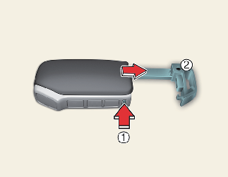 Нажмите кнопку фиксатора и, удерживая ее, извлеките механический ключ.