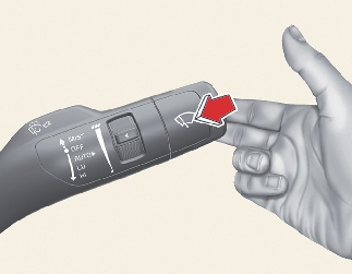 Слегка потяните рычаг на себя, чтобы разбрызгать омывающую жидкость на лобовое стекло и начать выполнение 1-3 циклов работы стеклоочистителей. Используйте эту функцию, когда лобовое стекло загрязнено. Разбрызгивание и работа стеклоочистителя будут продолжаться, пока вы не отпустите рычаг.