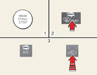 Нажимая кнопку кондиционера (A/C), нажмите кнопку управления забором воздуха не менее 5 раз в течение 3 секунд.