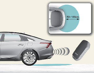 Интеллектуальная система открывания двери багажника подает сигнал при обнаружении интеллектуального ключа в 50~100 см от багажника.